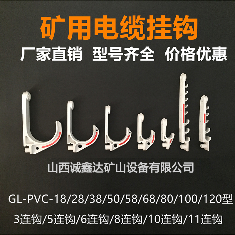 礦用電纜掛鉤主要包括:18型、28型、38型、50型、58型、68型、80型、100型、120型、3連鉤、5連鉤、6連鉤、8連鉤、10連鉤、11連鉤、管道掛鉤、水袋掛鉤、鋼絲扣、固定扣、GL-PVC18、GL-PVC28、GL-PVC38、GL-PVC50、GL-PVC58、GL-PVC68、GL-PVC80、GL-PVC100、GL-PVC120、18三連鉤、70三連鉤、五連鉤、小六連鉤、18六連鉤、八連鉤等;還可以根據(jù)客戶的需要進(jìn)行定制,山西誠鑫達(dá)公司有煤安認(rèn)證,質(zhì)量均符合國家標(biāo)準(zhǔn)。