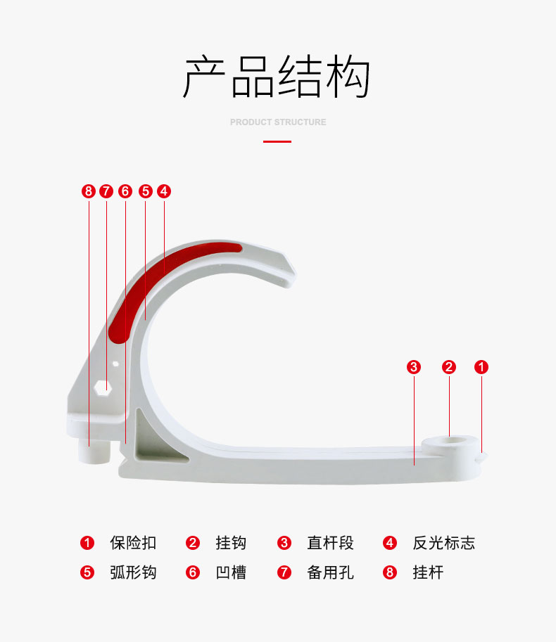6、結(jié)構(gòu)簡單合理,使用靈活,可根據(jù)實(shí)際需要任意調(diào)整電纜掛鉤的數(shù)量。
